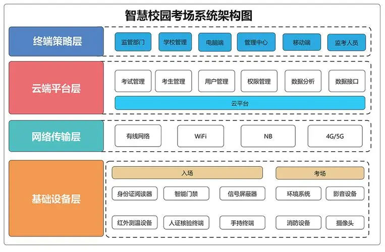 智慧校園的智慧考場建設(shè)是一種現(xiàn)代化信息技術(shù)手段為基礎(chǔ)的考試管理模式,主要包括考務(wù)管理系統(tǒng)、身份識別與驗證系統(tǒng)、監(jiān)控與安全系統(tǒng)、作弊檢測與防范系統(tǒng)和數(shù)據(jù)分析與評價系統(tǒng)等多個系統(tǒng)。下面成都弱電工程公司將帶你詳細了解智慧考場系統(tǒng)的功能和作用。