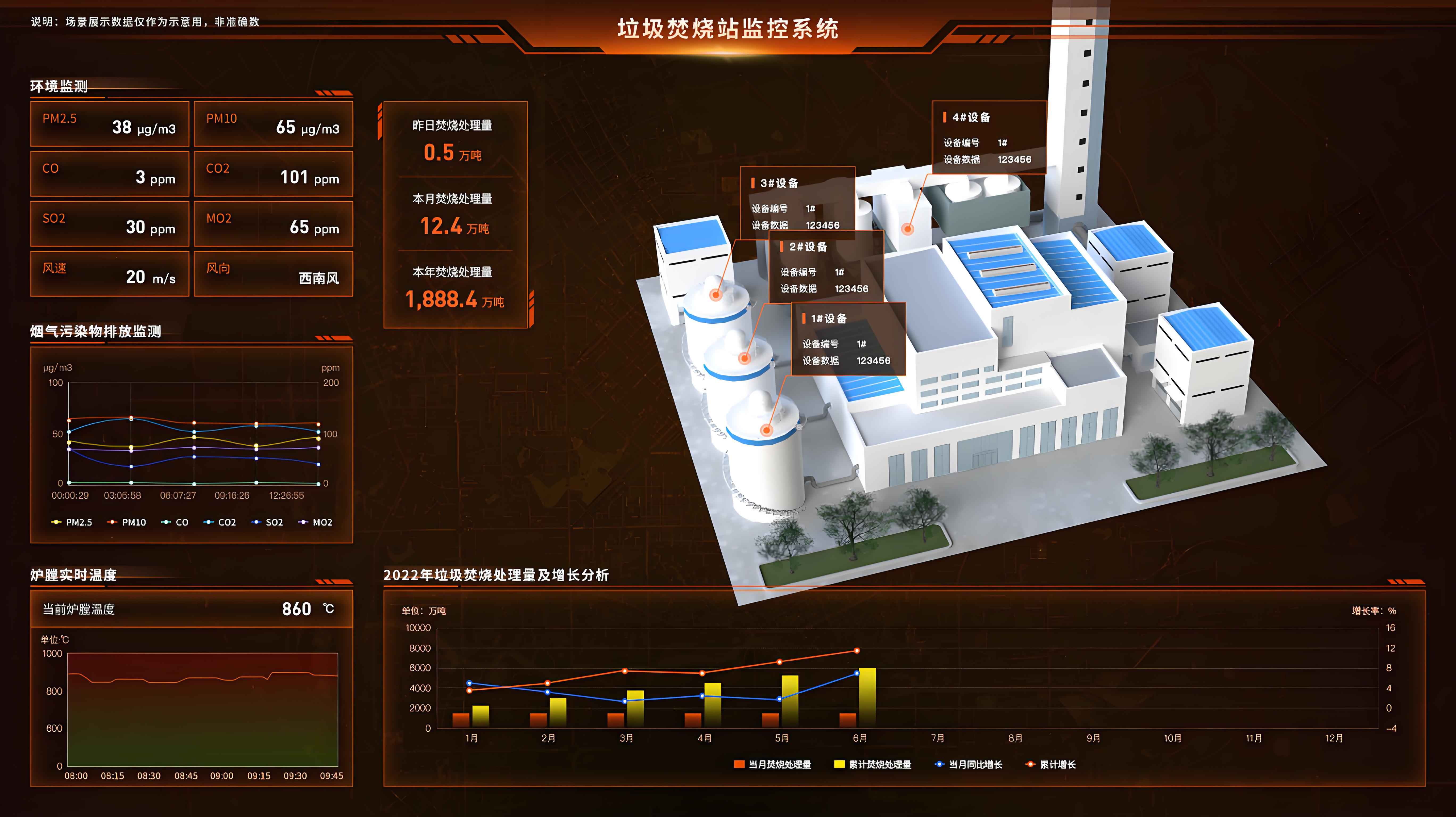 設(shè)備運(yùn)行監(jiān)控:實(shí)時(shí)監(jiān)測(cè)焚燒爐、發(fā)電機(jī)組、煙氣處理系統(tǒng)等主要設(shè)備的狀態(tài),確保設(shè)備在安全范圍內(nèi)運(yùn)行。